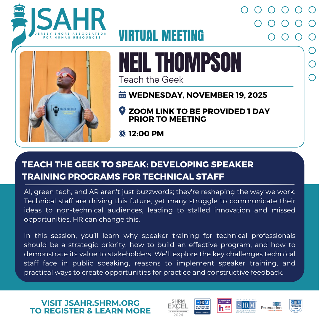 November Virtual Meeting - Teach the Geek to Speak: Developing Speaker Training Programs for Technical Staff